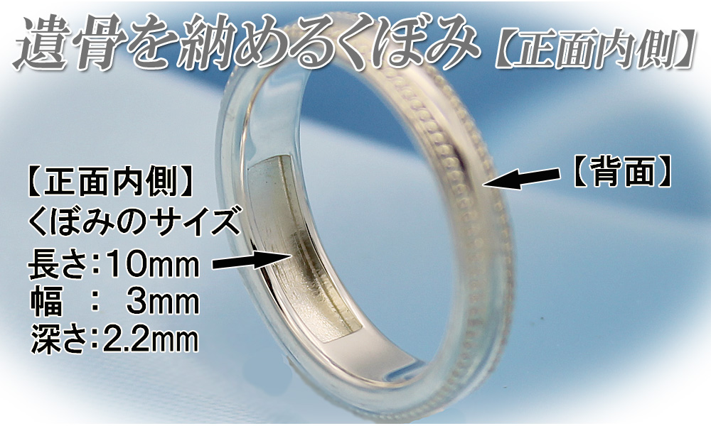 リング正面は遺骨を納めるため、ある程度厚みがありますが、横や背面は指にはめた時に違和感がないように薄く調整しています。