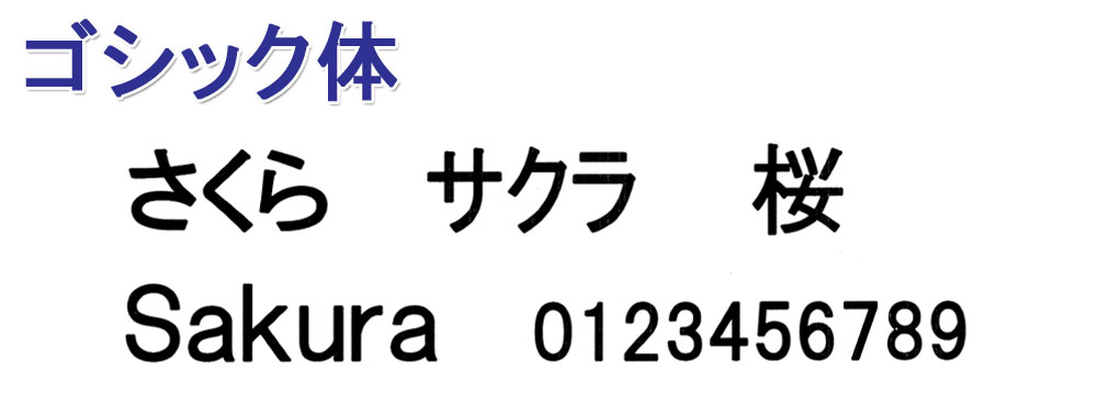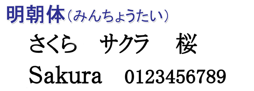 ※日本字は「明朝体」「ゴシック体」のみ、英文字は全ての書体で対応します。