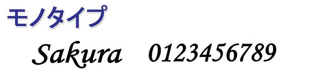 モノタイプは英文字(大文字・小文字の組み合わせ)・数字に対応します。