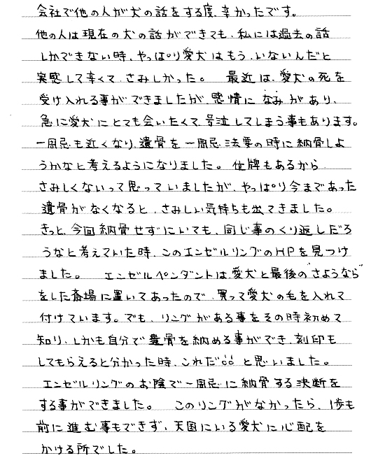 「自分で納骨できるエンゼルリングは理想的でした。」