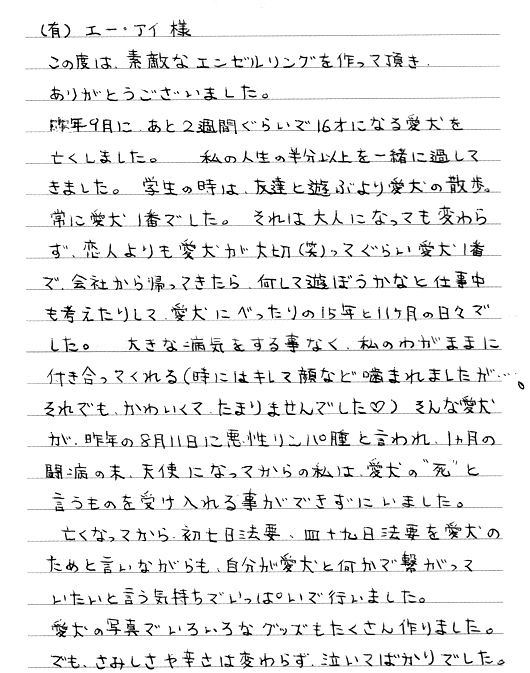 愛犬に対するとても深い愛情がよく伝わってきました。