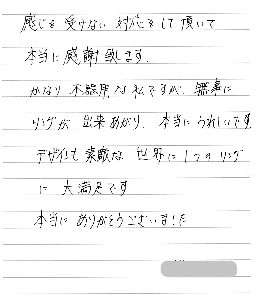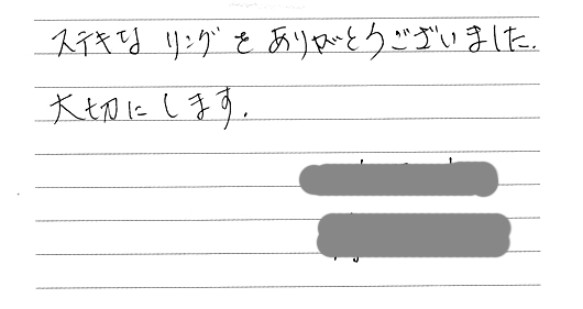 「世界でたった1つの指輪になりました。」