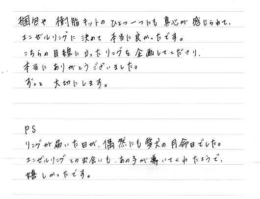 「主人を指輪を通してずっと感じられるかと思うと、ワクワクしました。」